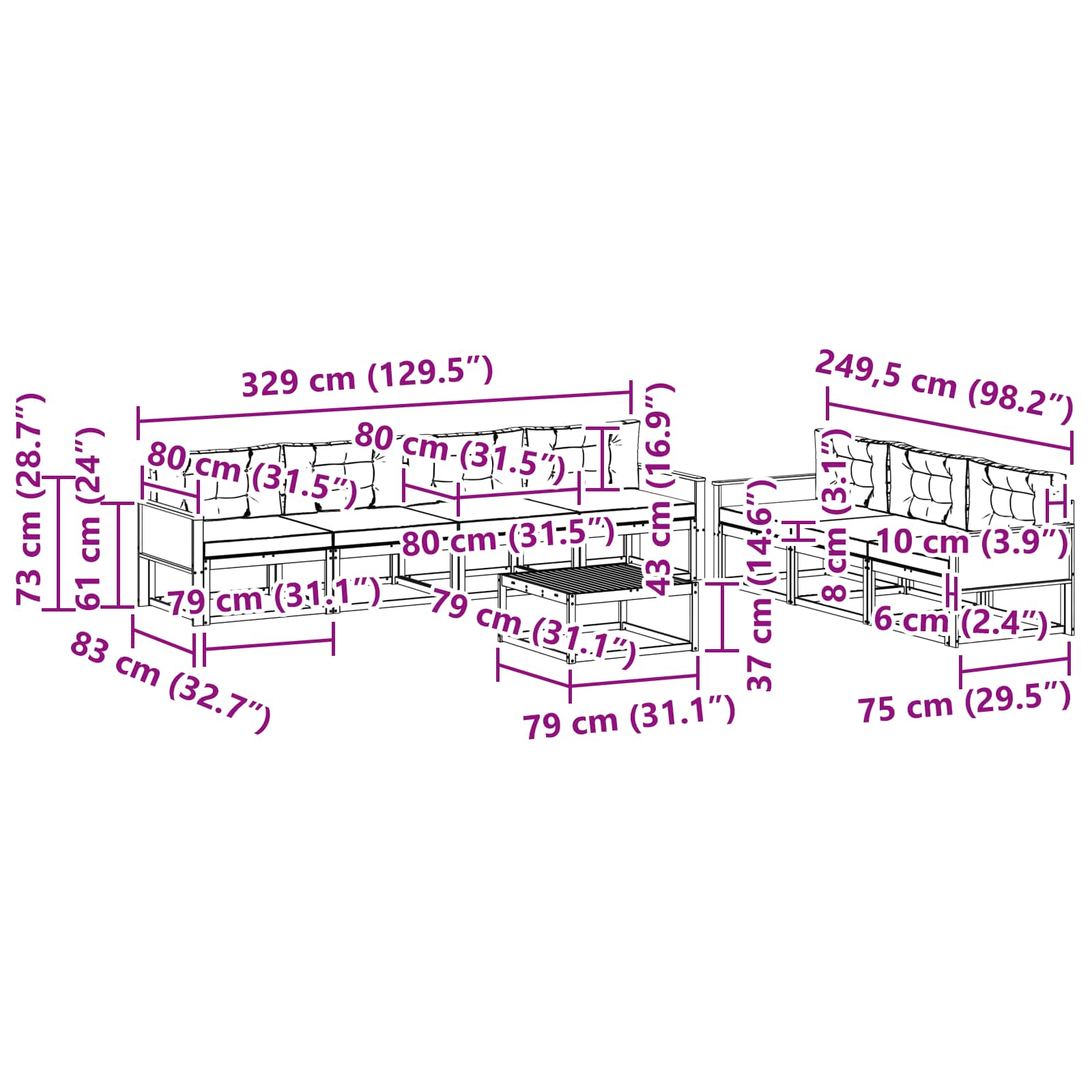 • Pevný lamelový rám: Tento pohovkový set má stabilní lamelový rám, co poskytuje dobrou podporu a stabilitu. Díky tomuto designu vypadá moderně a zůstane pevný i při častém používání. S prostorným sezením a super oporou je ideální pro venkovní akce.