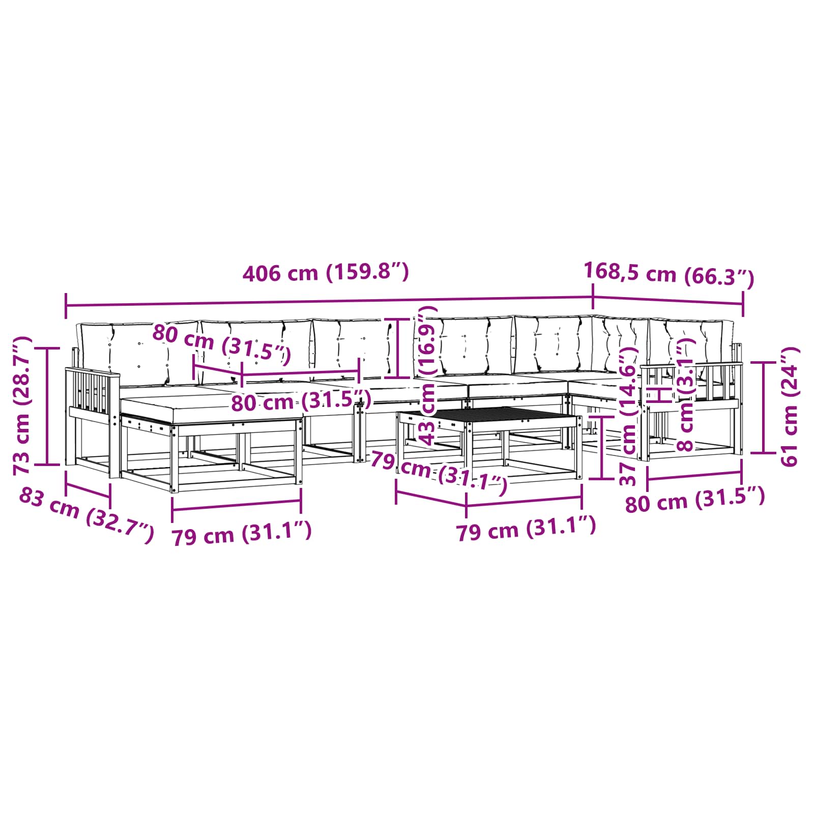 Tato rohová sedací souprava bez námahy spojuje moderní design s funkčností, perfektní volba pro zahradu, terasu, dvorek nebo bazén. Je super vhodná pro venkovní akce; její čisté linie a minimalistický styl skvěle padnou do každého prostředí a poskytují pohodlí a relaxaci.