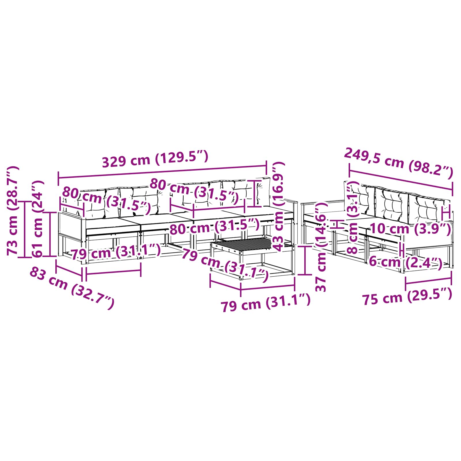 • Pevný lamelový rám: Tento pohovkový set má stabilní lamelový rám, co poskytuje dobrou podporu a stabilitu. Díky tomuto designu vypadá moderně a zůstane pevný i při častém používání. S prostorným sezením a super oporou je ideální pro venkovní akce.