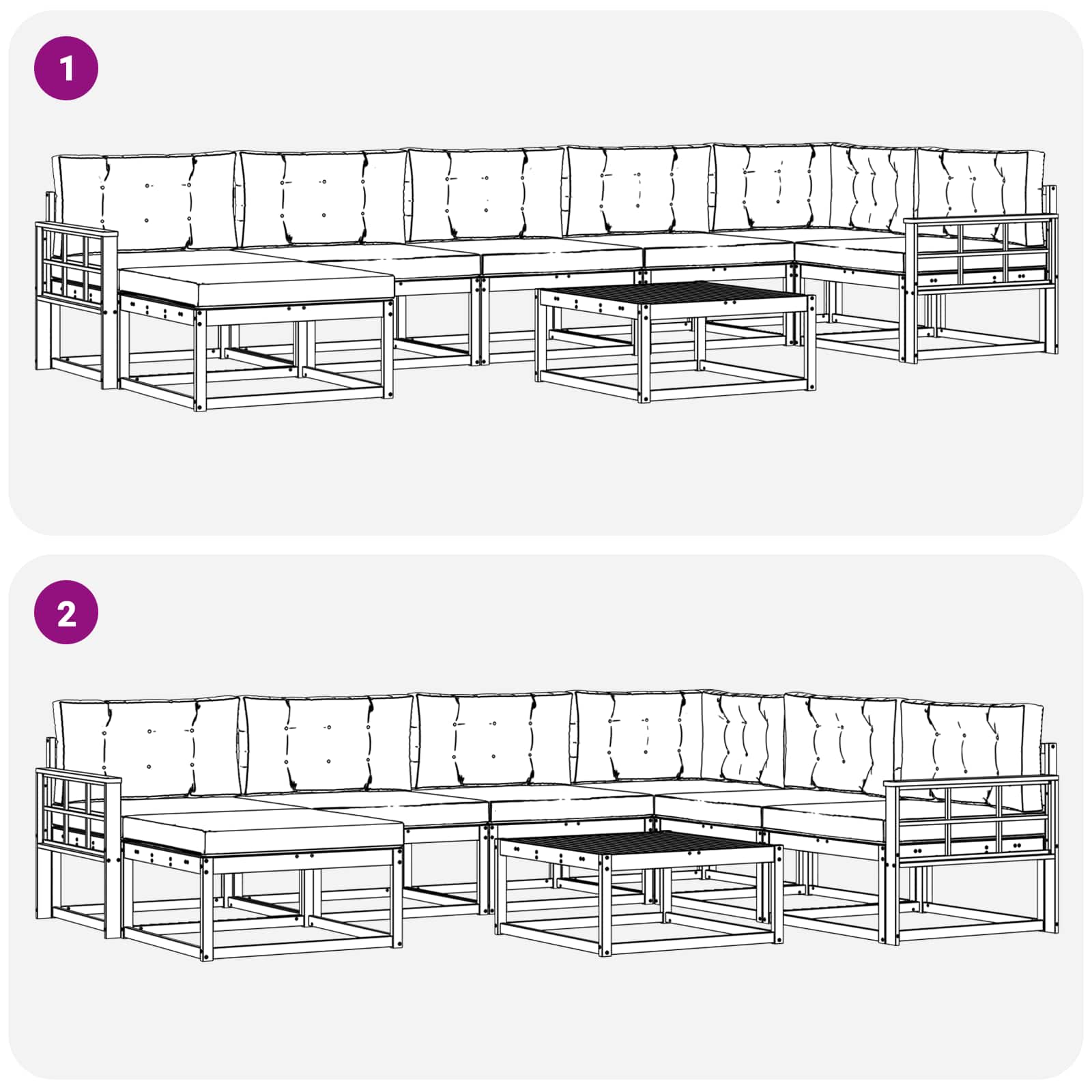 • Různorodé použití: Skvěle se hodí pro každou zahradu, terasu nebo dvorek – tato souprava je univerzální doplněk do jakéhokoli venkovního prostoru. Design se snadno přizpůsobí různým uspořádáním sezení.