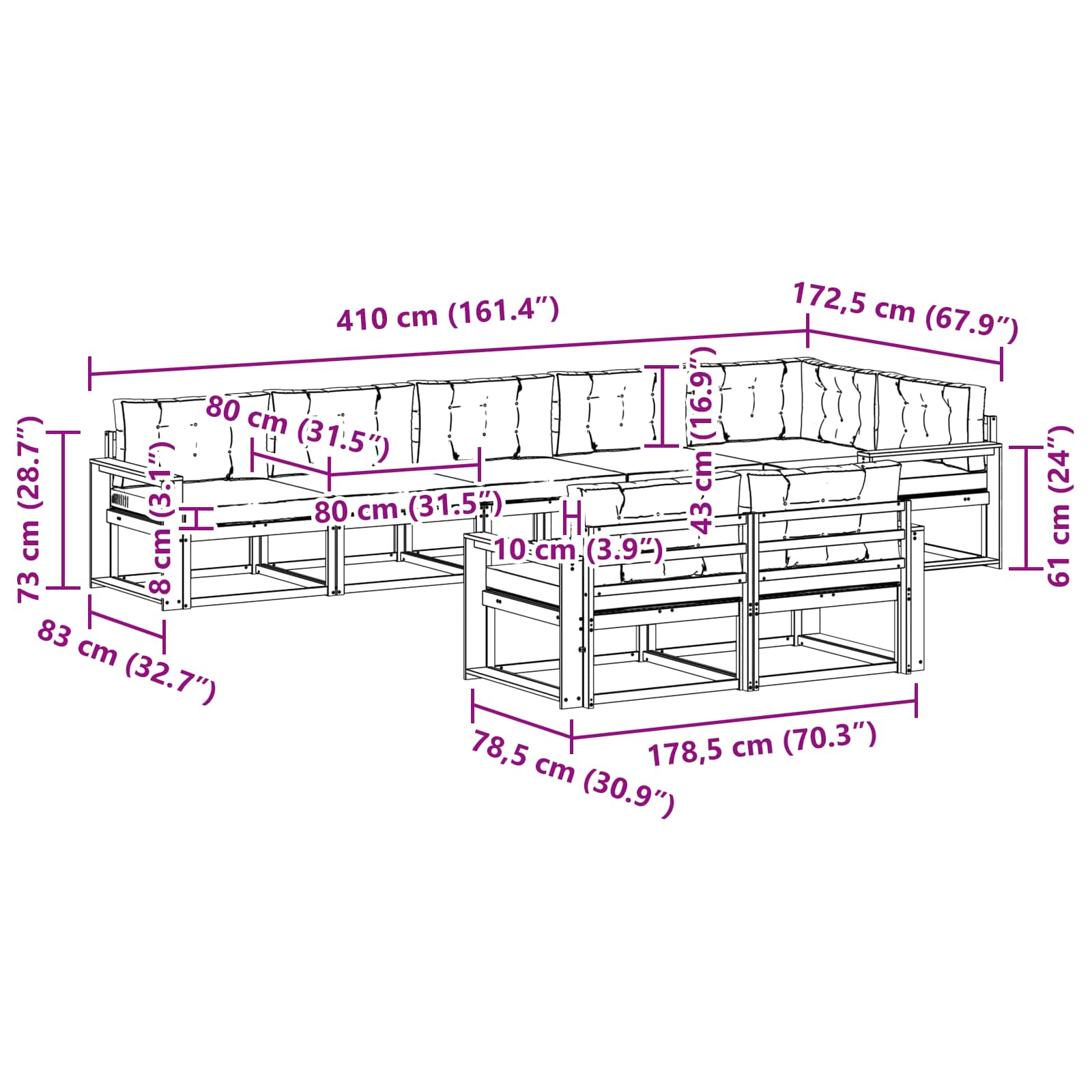 • 8 x Sedací polštář: 80 x 80 x 8 cm (D x Š x V)