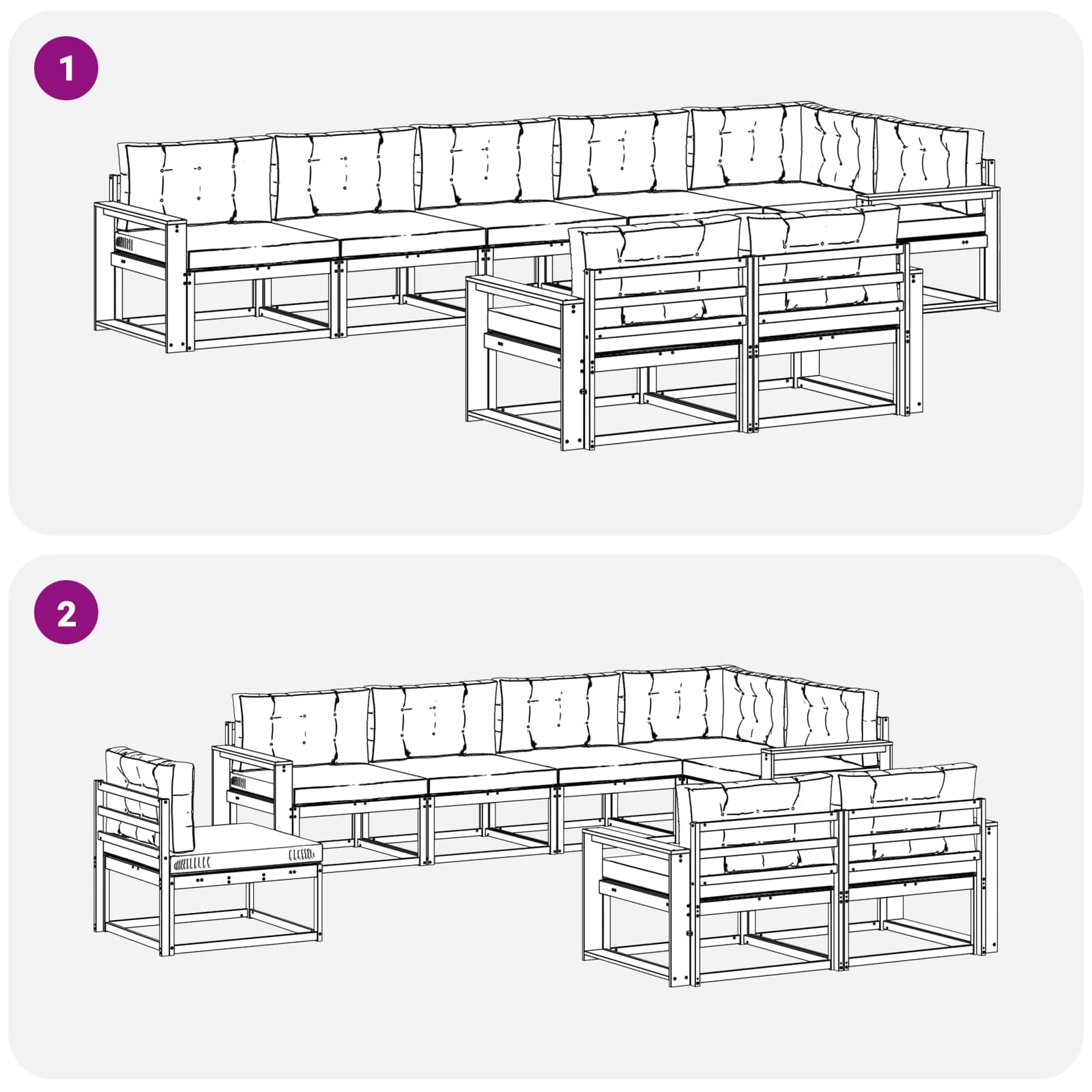 • Modulární flexibilita: Upravte rozložení soupravy na míru různým událostem nebo potřebám prostoru. Tato vlastnost je super pro počet hostů, které máte, a pro změny počasí. Umožňuje snadné přizpůsobení uspořádání.