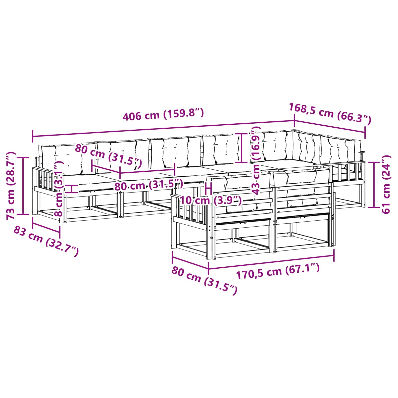 • 8 x Sedací polštář: 80 x 80 x 8 cm (D x Š x V)