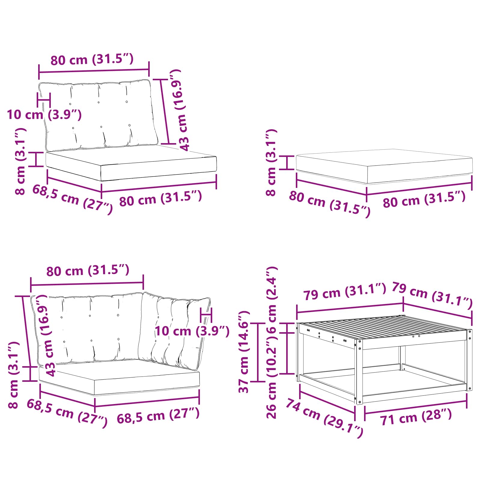 • 6 x Sedák: 80 x 68,5 x 8 cm (D x Š x V)
