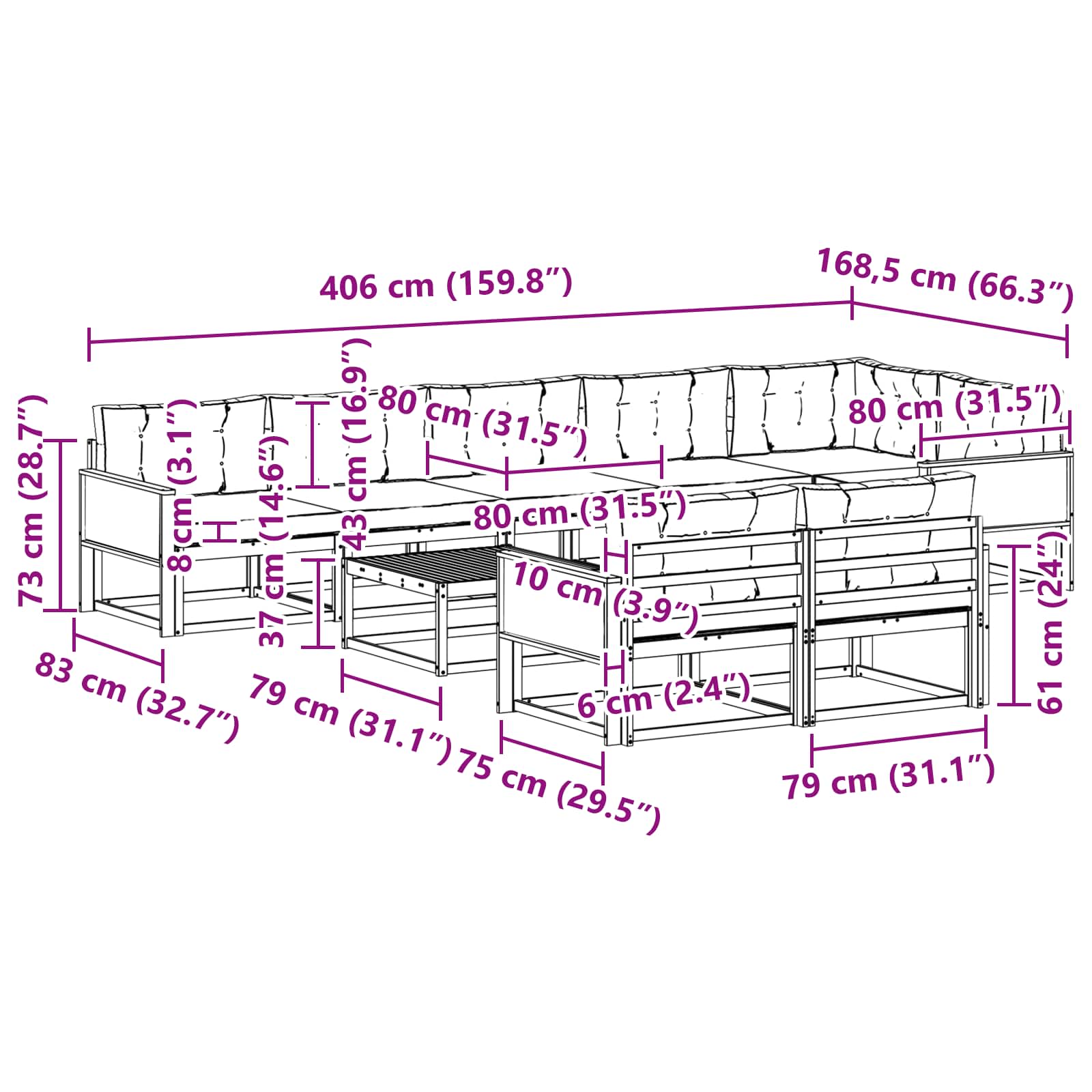 • 8 x Sedací polštář: 80 x 80 x 8 cm (D x Š x V)
