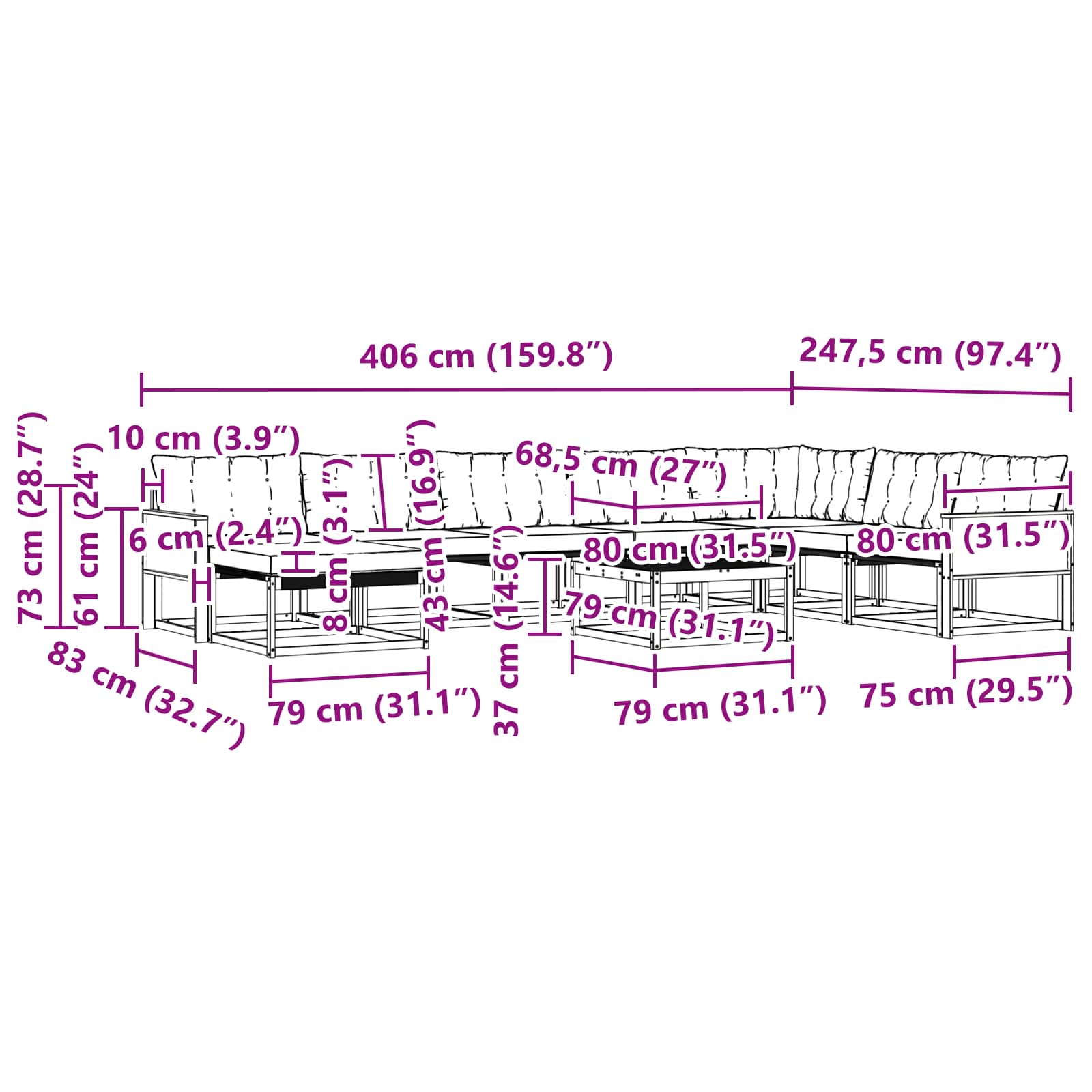 • 6 x Sedací poduška: 80 x 68,5 x 8 cm (D x Š x T)