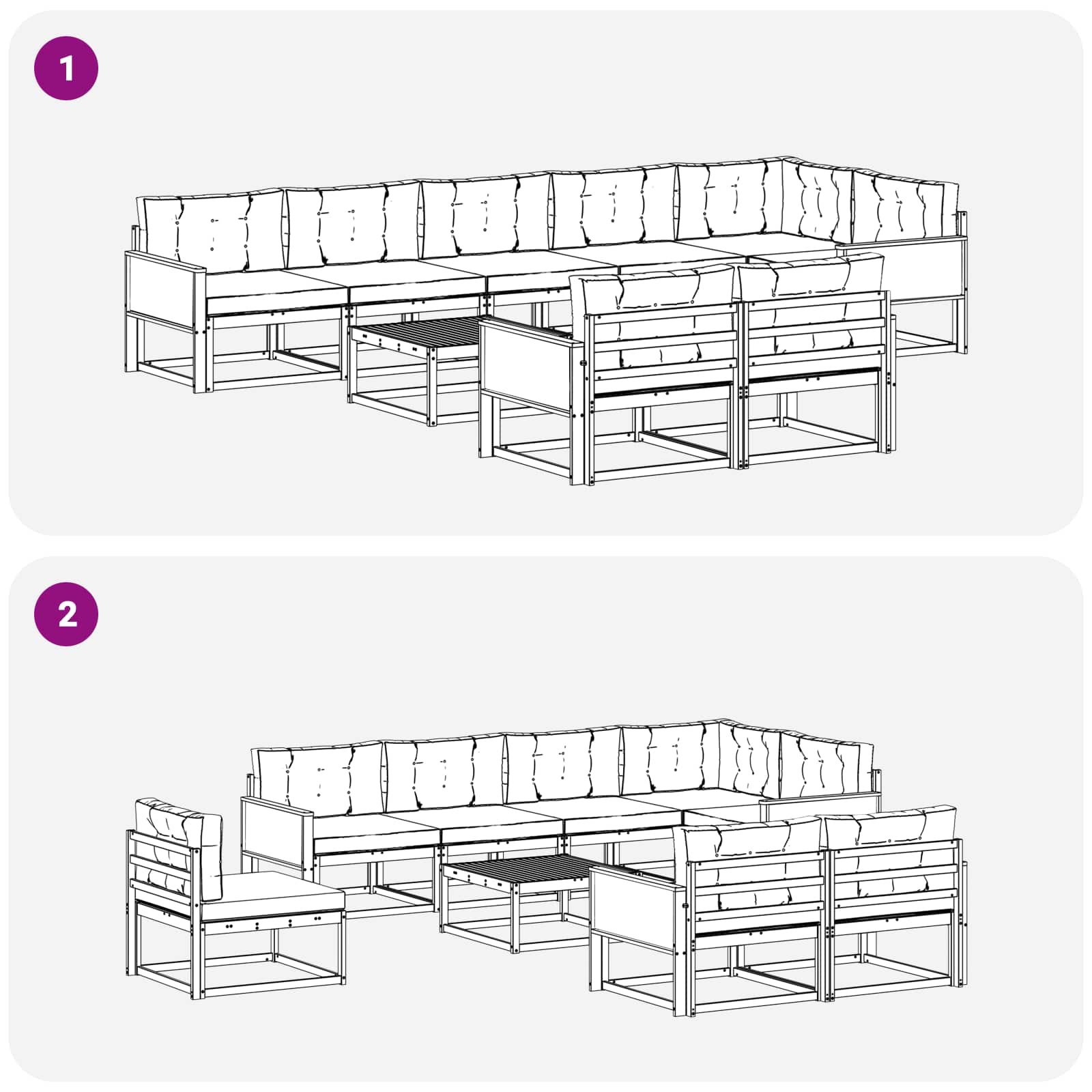 • Doporučené použití: Tohle sezení se skvěle hodí na zahradní terasy, k bazénu nebo na dvorek. Je navrženo pro pohodlné posezení s partou, ať už na letní grilovačce nebo na klidném večeru pozorování západu slunce.