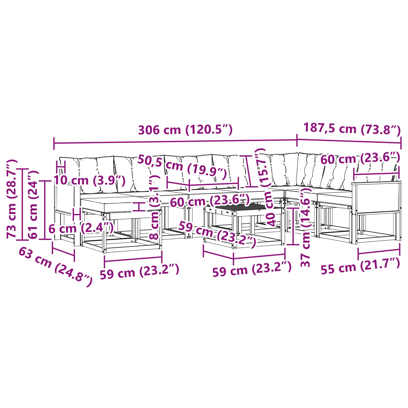 • 8 x Zádový polštář: 60 x 40 x 10 cm (D x Š x V)