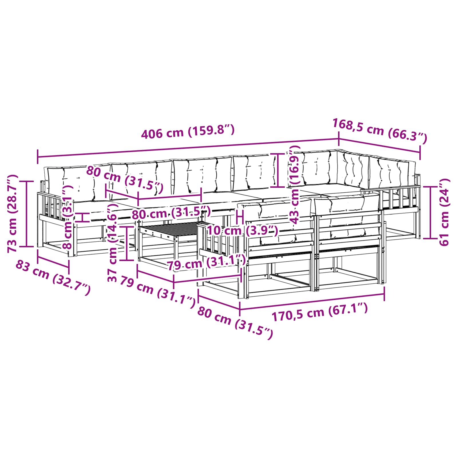 Tato sada venkovního nábytku je super stylovým doplňkem pro každou zahradu nebo terasu. Má čisté linie a moderní vzhled, navržená pro pohodlí a společenské interakce v každém venkovním prostoru. Vyrobená z masivního akáciového dřeva, spojuje atraktivní vzhled s funkčností díky modulárnímu uspořádání, které si můžete snadno přizpůsobit různým prostorům a příležitostem.