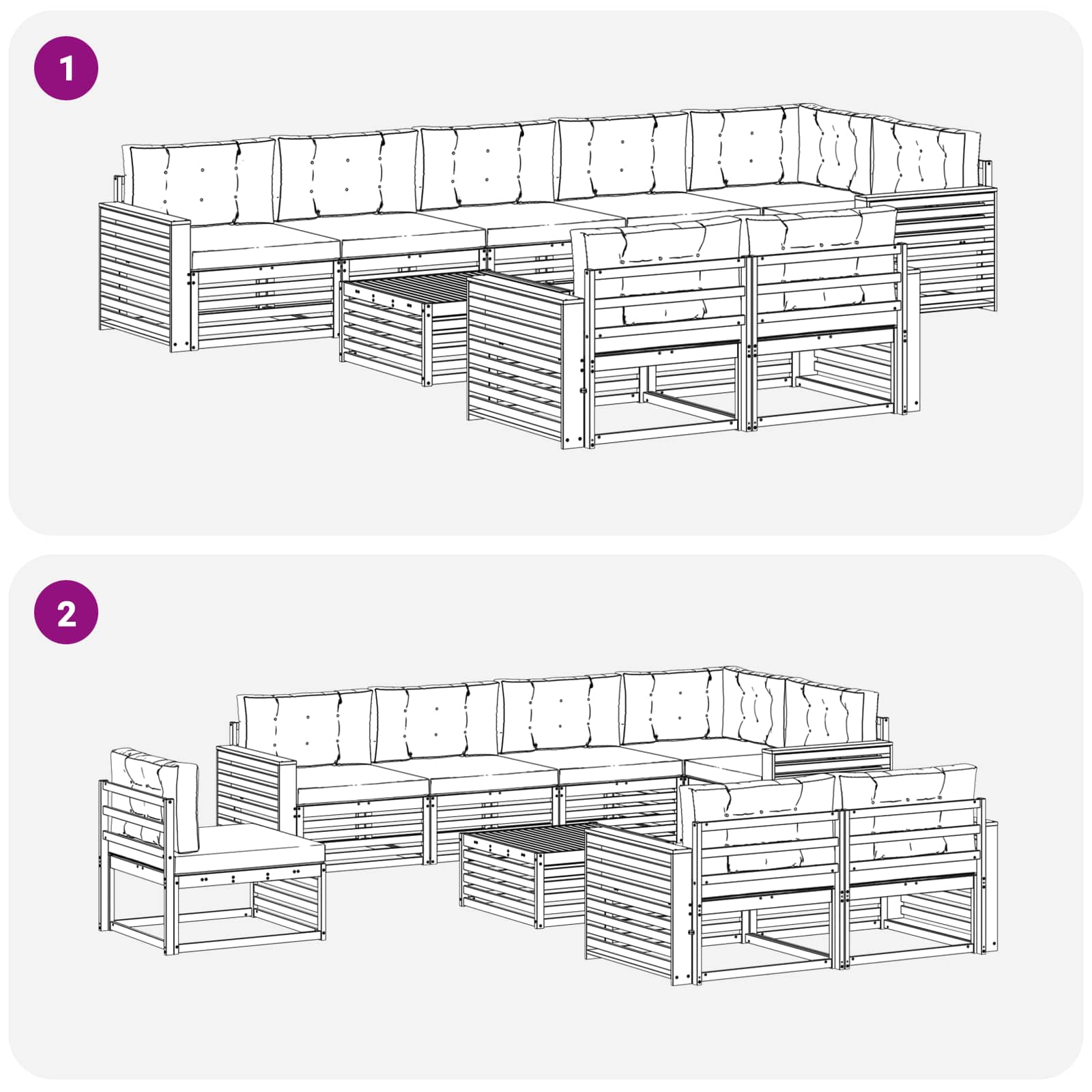 Tato venkovní souprava nábytku kombinuje styl a funkčnost a vytváří tak úžasný středobod na vaší zahradě nebo terase. Moderní design s čistými liniemi a jednoduchými detaily dodává eleganci a zároveň podporuje relaxaci i společenské akce venku. Celá je vyrobená z masivního akáciového dřeva, což zajišťuje trvanlivost a stálou vizuální krásu, ideální pro ty, kteří chtějí praktický a zároveň elegantní venkovní nábytek.