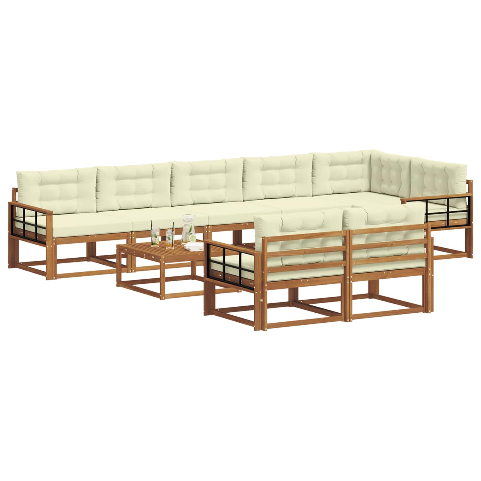 Tato sada venkovního nábytku je super stylovým doplňkem pro každou zahradu nebo terasu. Má čisté linie a moderní vzhled, navržená pro pohodlí a společenské interakce v každém venkovním prostoru. Vyrobená z masivního akáciového dřeva, spojuje atraktivní vzhled s funkčností díky modulárnímu uspořádání, které si můžete snadno přizpůsobit různým prostorům a příležitostem.