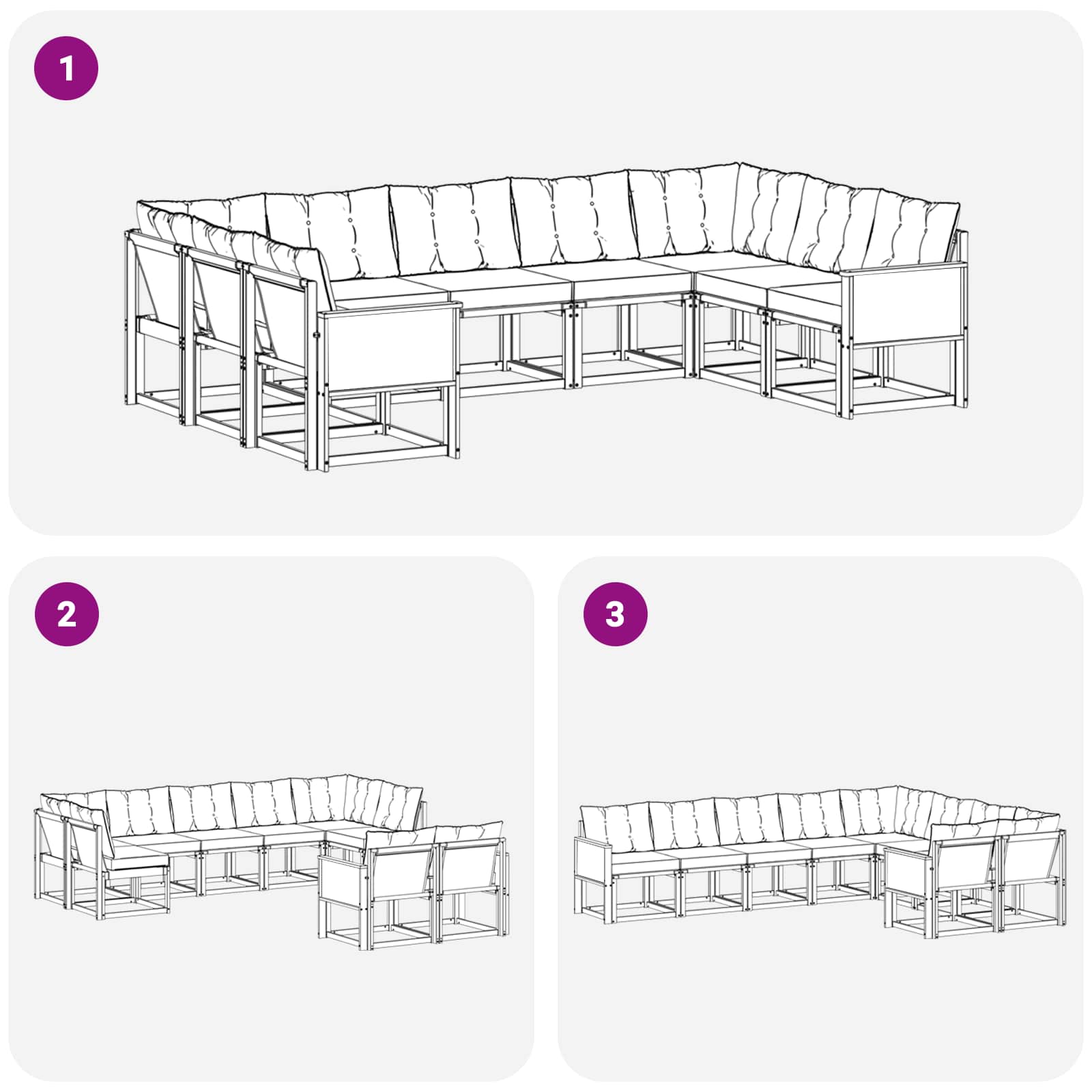 Tato pohovková sada přináší do vašeho venkovního prostoru styl i pohodlí. Působí skvěle jak vzhledově, tak funkčně, ať už relaxujete, nebo bavíte hosty. Její moderní vzhled vytváří příjemnou atmosféru, která dělá každou chvíli venku příjemnou. Navržena pro ty, kdo chtějí jemné prostředí, tato sada obohacuje okolí elegantními liniemi a odolnými materiály, ideální pro přeměnu vašeho venkovního prostoru na pohodlné útočiště.