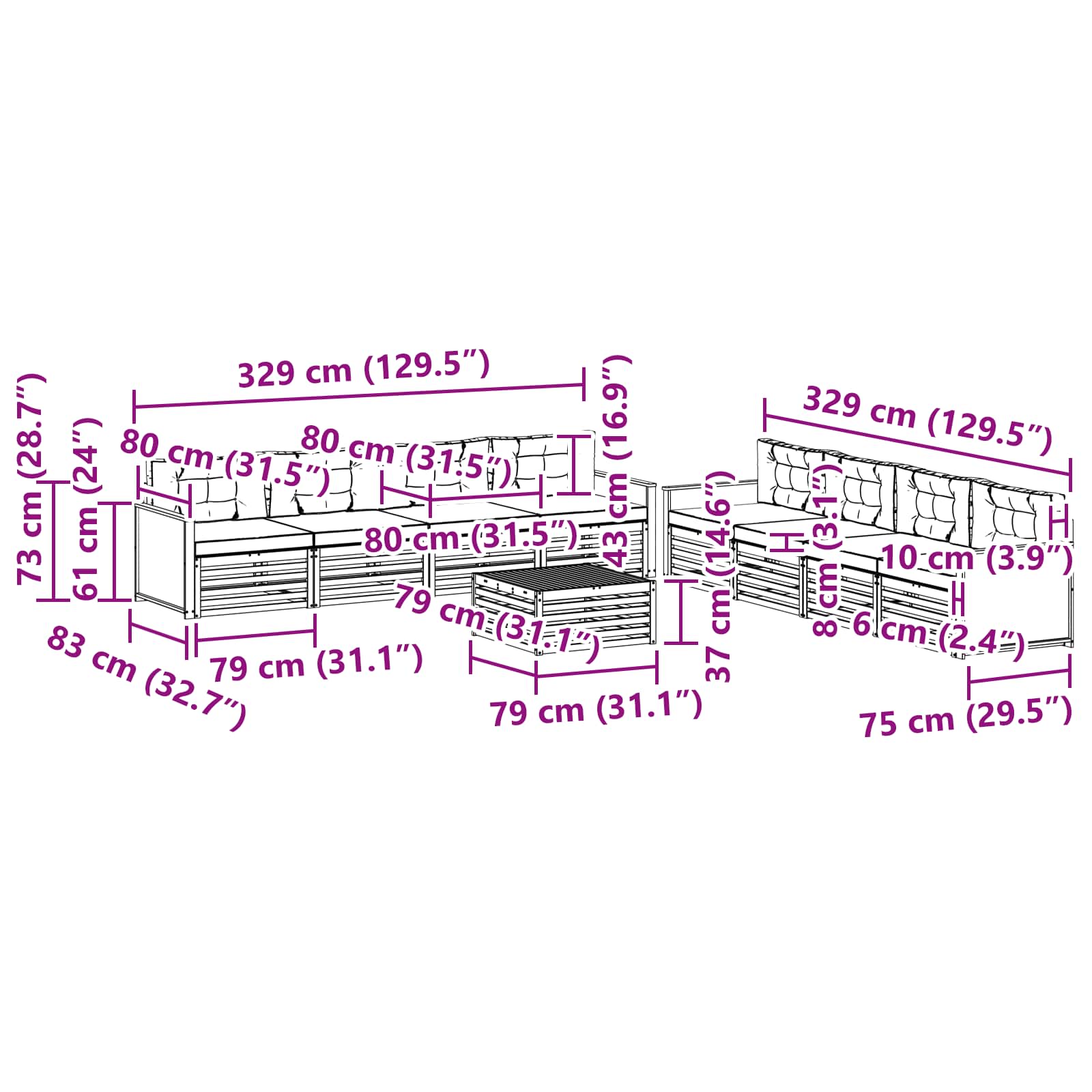 • Celkové rozměry: 79 x 79 x 37 cm (D x Š x V)