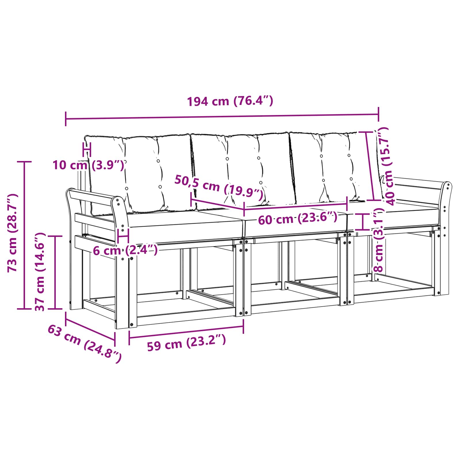• 3 x Střední pohovka: 59 x 63 x 73 cm (D x Š x V)