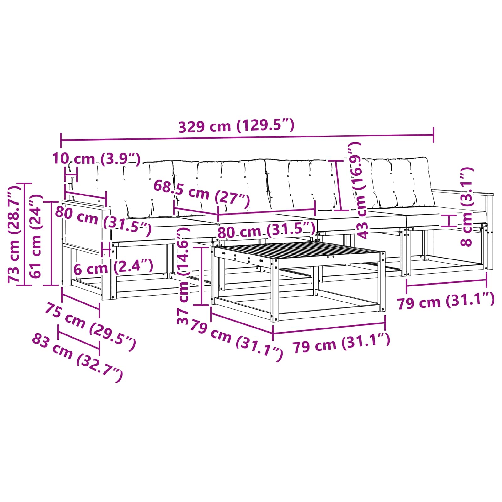 • 4 x Střední pohovka: 79 x 83 x 73 cm (D x Š x V)