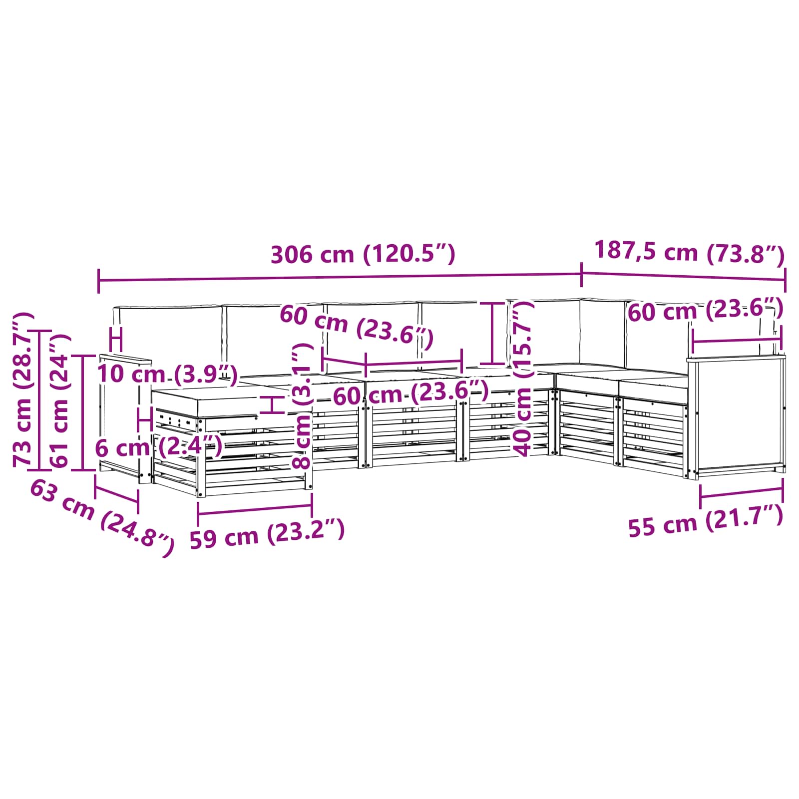 • 8 x Zádový polštář: 60 x 40 x 10 cm (D x Š x V)