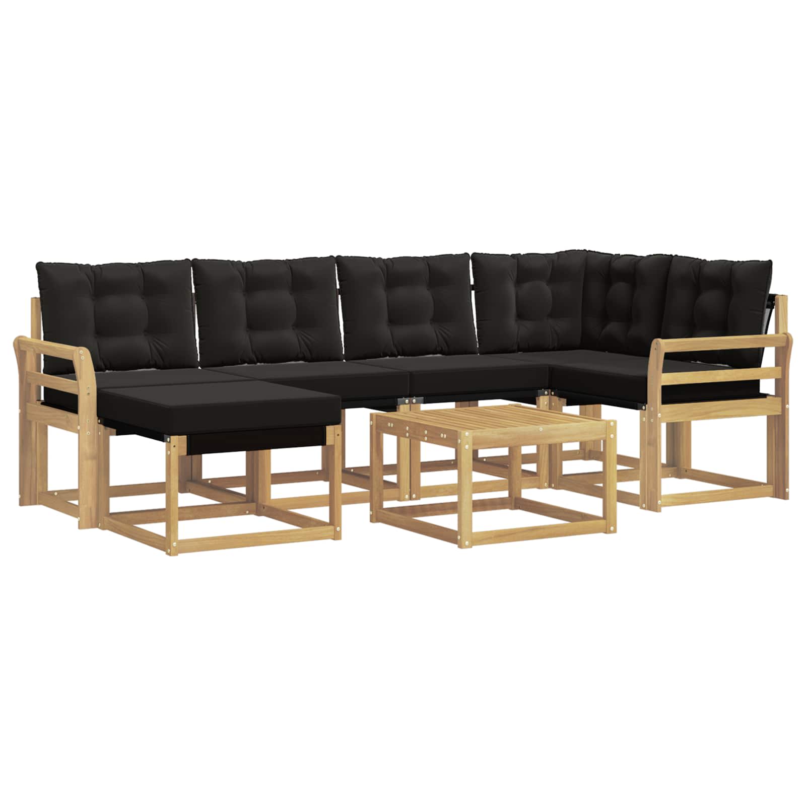 • Kvalitní materiály: Souprava se pyšní prémiovým masivním akáciovým dřevem a textilenem, kteří jsou vybráni pro svou odolnost a styl. Dřevo dodává na teple a textilen odolnost vůči povětrnostním podmínkám, což zajišťuje dlouhou životnost sedaček.