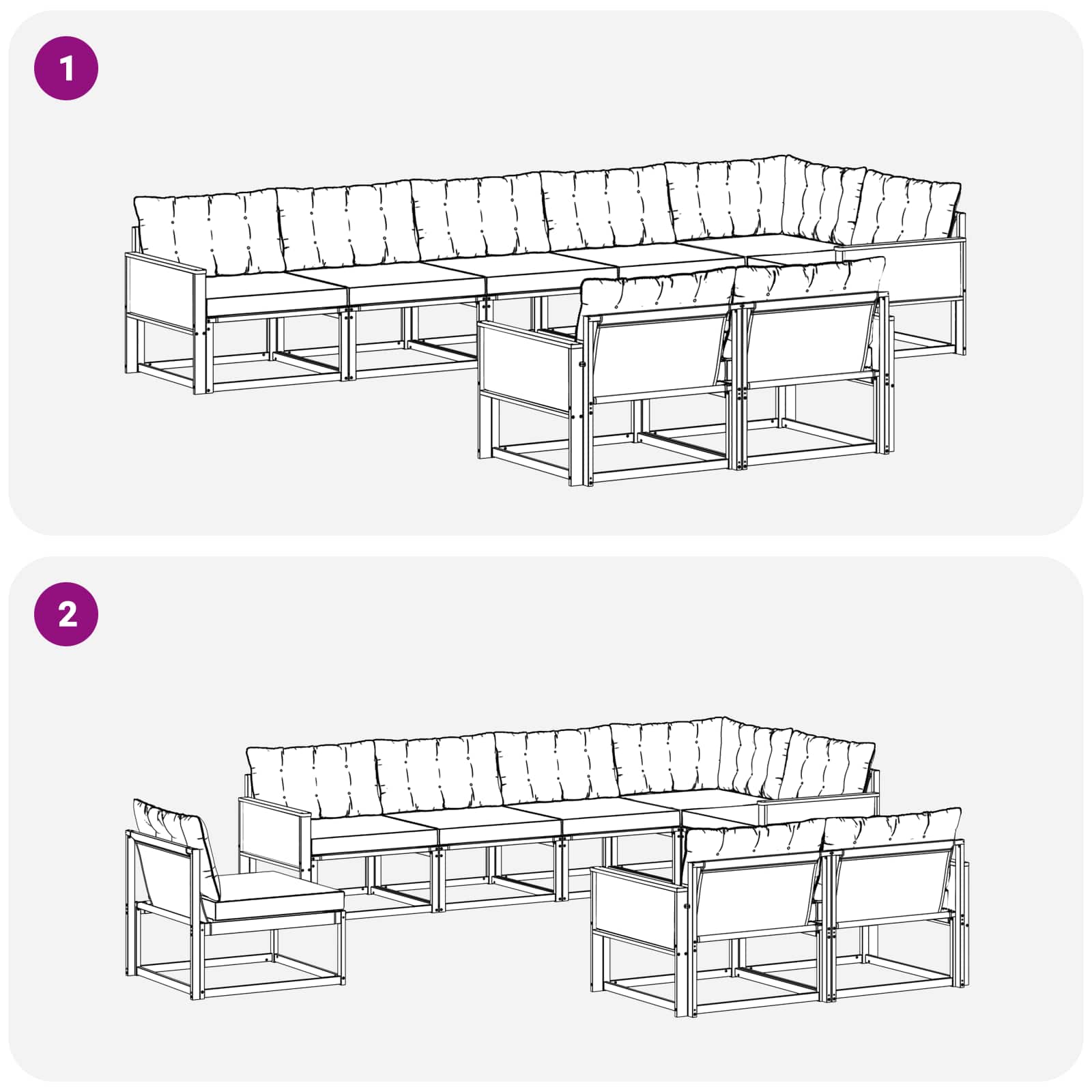 • Pohodlí a všestrannost: Modulární design umožňuje flexibilní uspořádání podle vašich potřeb. Je ideální jak pro relaxaci, tak na společenská setkání a přizpůsobí se jakémukoli venkovnímu prostoru, aby maximalizovala pohodlí.