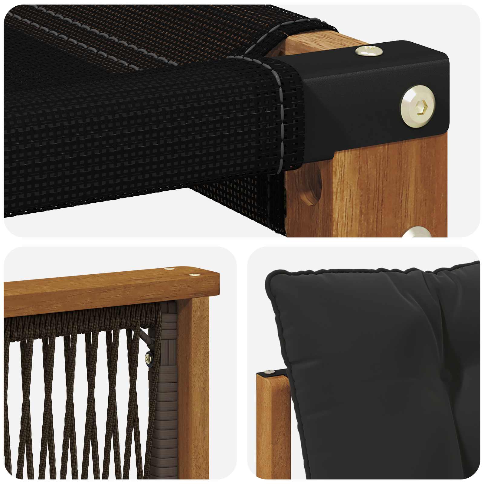 • Odolné masivní akáciové dřevo: Tato venkovní souprava je vyrobena z masivního akáciového dřeva, které je odolné a zvládne všechny venkovní podmínky. Stabilní konstrukce zajišťuje dlouhou životnost a přírodní hnědé tóny dodávají zahradě nebo terase skvělou atmosféru.