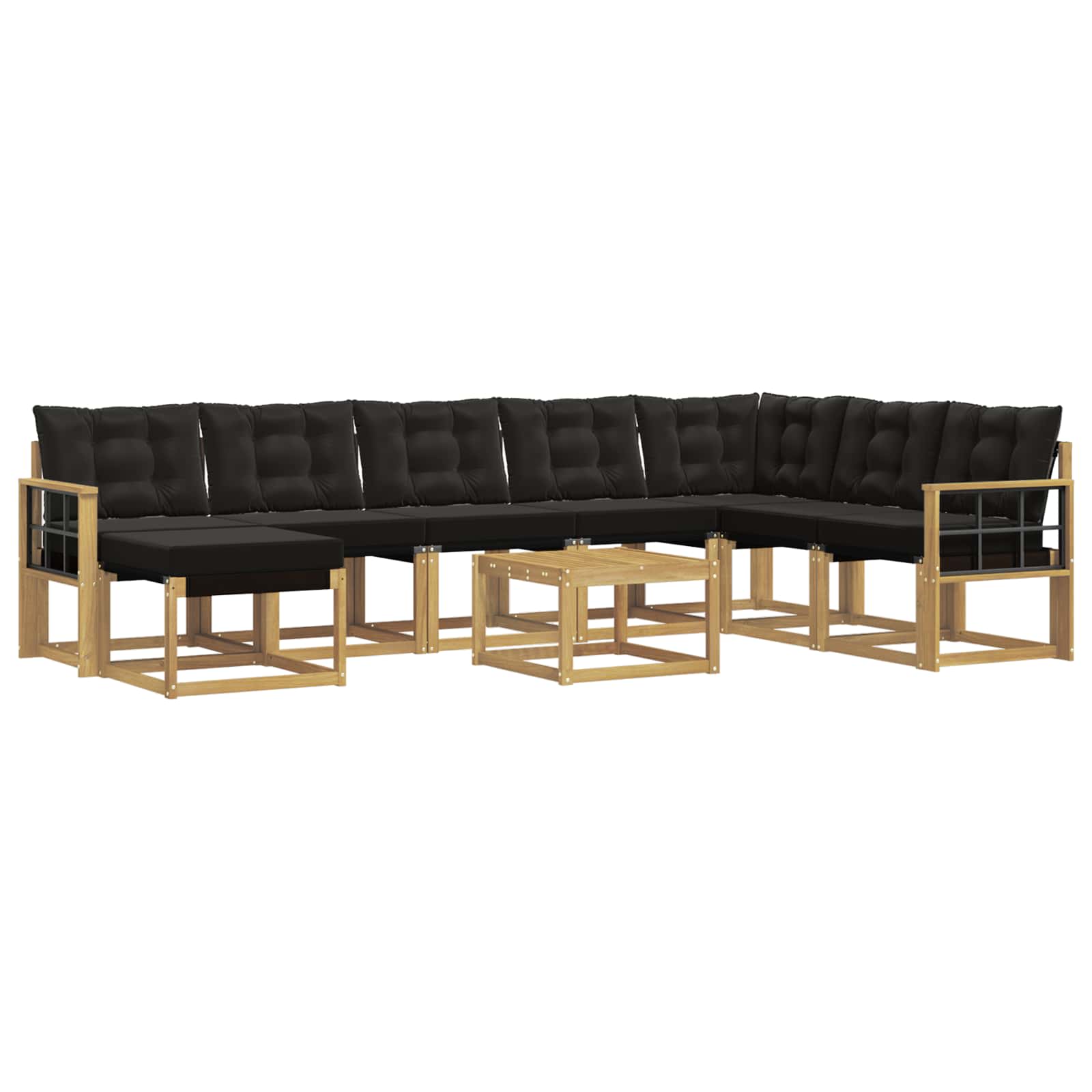 Tato moderní sedací souprava krásně doplní venkovní prostory a nabízí styl i funkčnost. S čistými liniemi má sofistikovaný pocit, skvělý pro současné zahrady. Perfektní pro setkání na patio nebo u bazénu, souprava nabízí pohodlné posezení s robustní konstrukcí a luxusními polštáři, které vyzývají k lenošivým odpoledním nebo veselým večerním srazům.