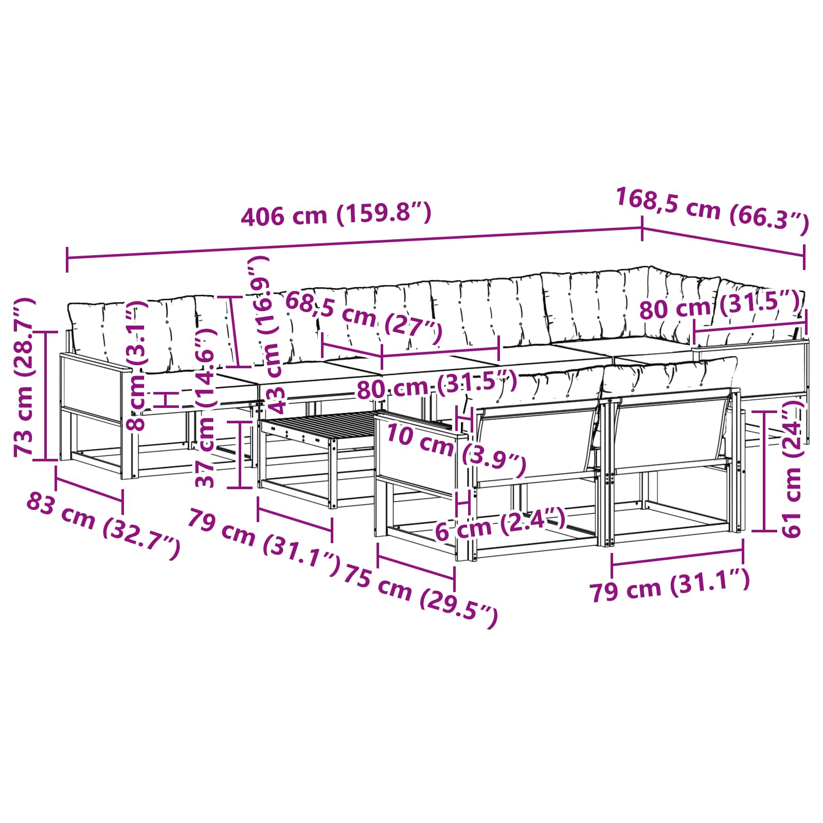 Venkovní pohovková souprava s polštářem 9 pcs Přirozená a černá