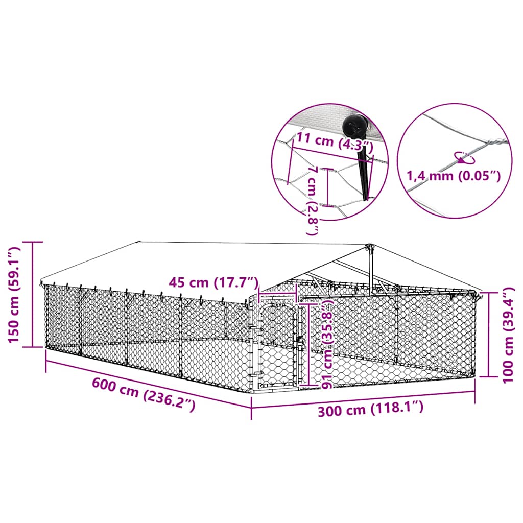 Venkovní psí kotec se střechou 600 x 300 x 150 cm