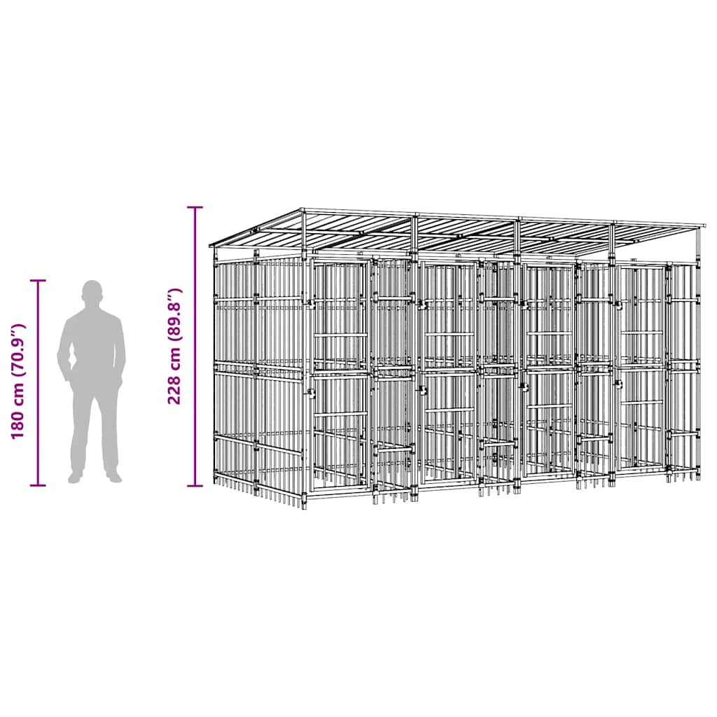 Venkovní psí kotec se střechou ocel 7,37 m²