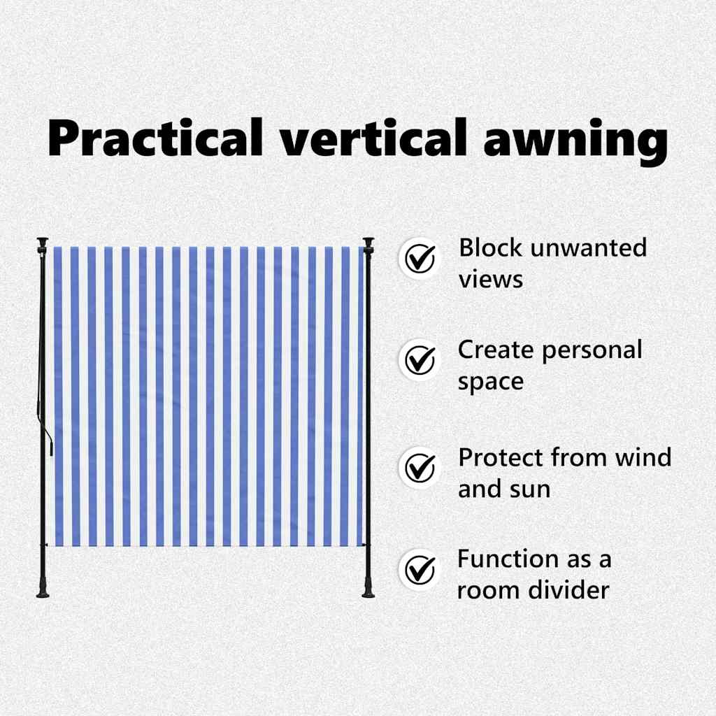 Materiál s dlouhou životností: Rám zástěny je vyroben z oceli, která je robustní a hodně toho vydrží. Tkanina s PU povrchovou úpravou je odolná proti UV záření. Ochrání vaši rodinu i hosty před UV zářením a oslňujícím slunečním světlem.
