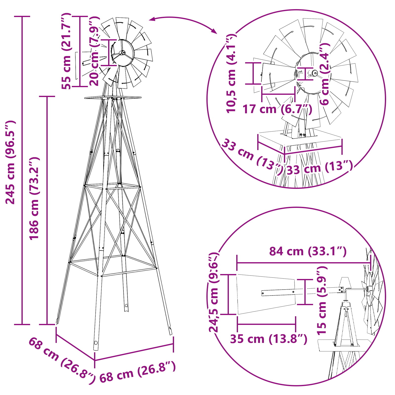 Tento železný větrný mlýn s industriálním stylem má elegantní šedou barvu, která skvěle zvedne vzhled vaší zahrady nebo terasy. Jeho obdélníkový tvar ho dělá výrazným prvkem v exteriéru, a navíc je navržen tak, aby vydržel dlouho. Ideálně doplní venkovní prostory ovlivněné městským stylem a dodá jim rustikální atmosféru.