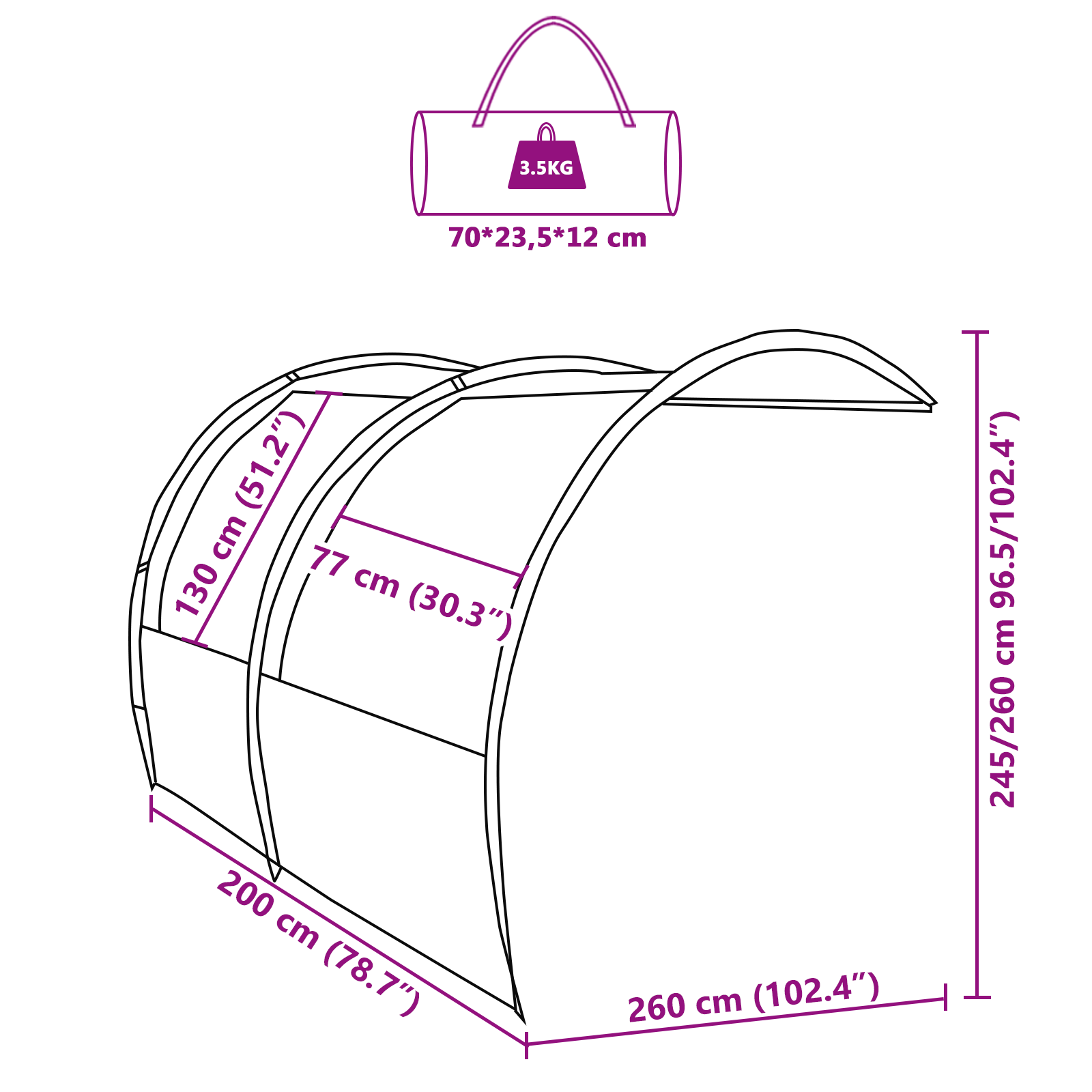 • Celkové rozměry: 260 x 200 x 260 cm (D x Š x V)
