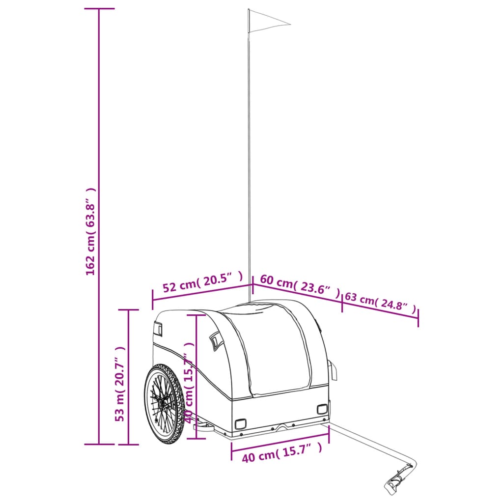 Robustní materiál: Železo je pevný a tvrdý materiál. Je to oblíbený materiál pro průmyslové a nábytkářské konstrukce. Tento přívěsný vozík za kolo je vyroben ze železa a je velmi robustní a odolný.