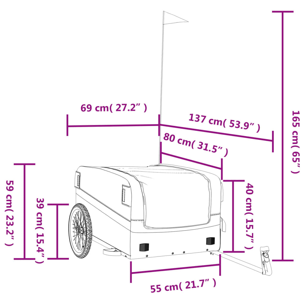 Robustní materiál: Železo je pevný a tvrdý materiál. Je to oblíbený materiál pro průmyslové a nábytkářské konstrukce. Tento přívěsný vozík za kolo je vyroben ze železa a je velmi robustní a odolný.
