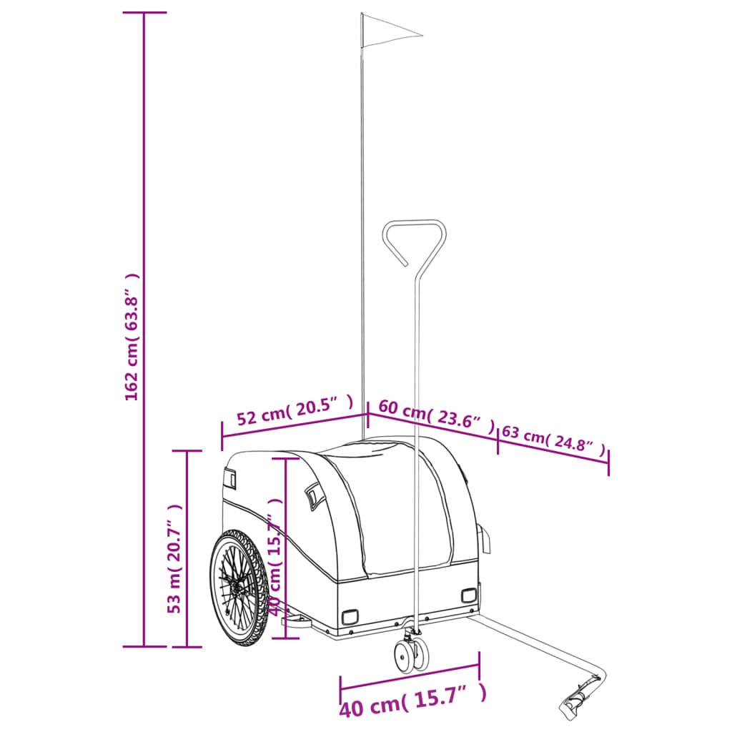 Robustní materiál: Železo je pevný a tvrdý materiál. Je to oblíbený materiál pro průmyslové a nábytkářské konstrukce. Tento přívěsný vozík za kolo je vyroben ze železa a je velmi robustní a odolný.
