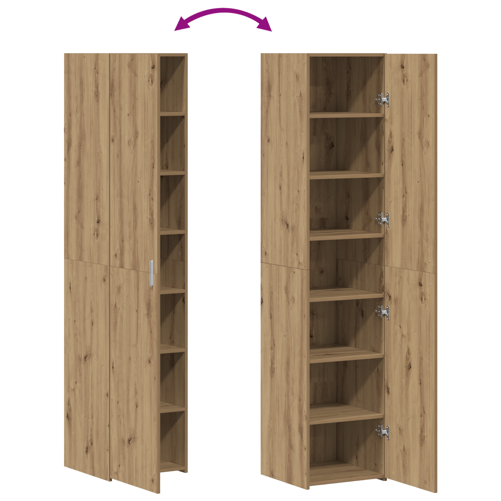 Tenhle vysoký skříň z kompozitního dřeva je must-have pro jakýkoliv moderní prostor, spojující jednoduchost a funkčnost ve svém stylovém a minimalistickém designu. Díky obdélníkovému tvaru se skvěle hodí do všech interiérů, ať už jde o jídelnu, obývák nebo chodbu. Jeho zajímavá silueta slouží jako skvělý středobod, ale taky se bez problémů integruje do stávajícího nábytku. Navržený pro vnitřní užití, je z kvalitního kompozitního dřeva a dělá z něj praktický doplněk pro vaše úložné potřeby.