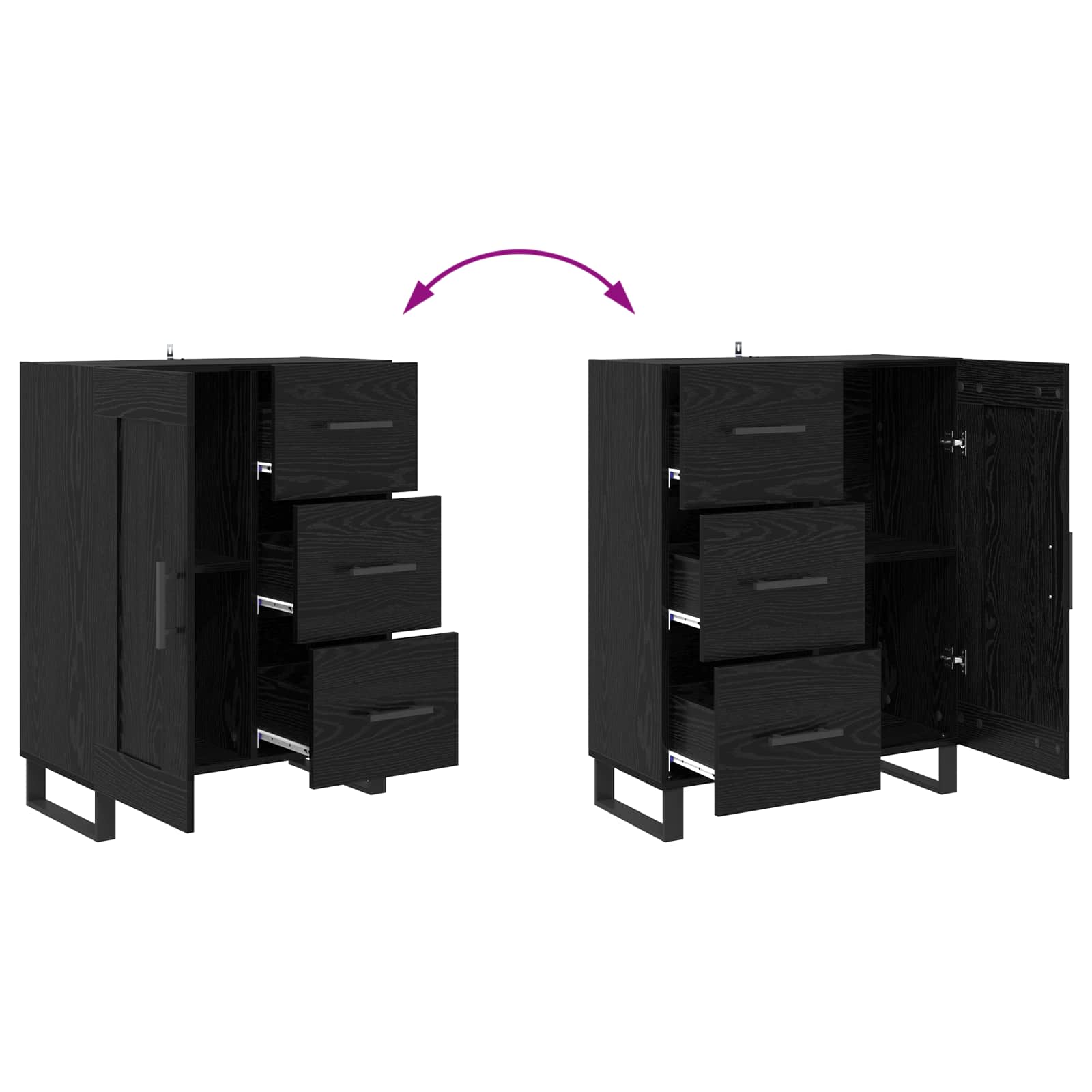 • Železné nohy a úchyty: Stabilní čtvercové železné nohy a elegantní tyčové úchyty dávají kabinetu skvělý look a funkčnost. Nohy zajišťují silnou podporu, zatímco úchyty usnadňují otevírání a zavírání dveří, což ještě zvyšuje praktičnost. Tato kombinace zajišťuje stabilitu a jednoduché používání.