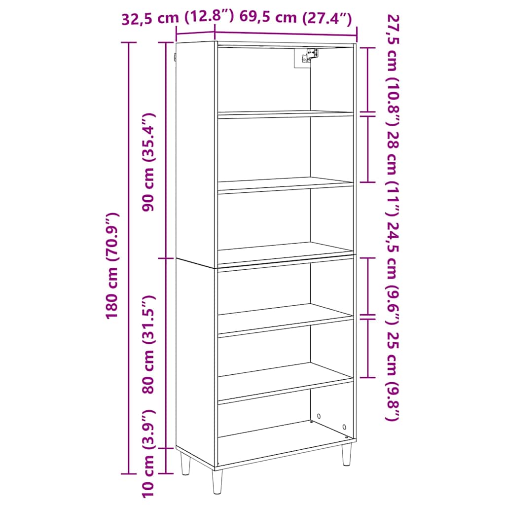 • 1 x Závěsná skříňka na zeď: 69.5 x 32.5 x 90 cm (D x Š x V)