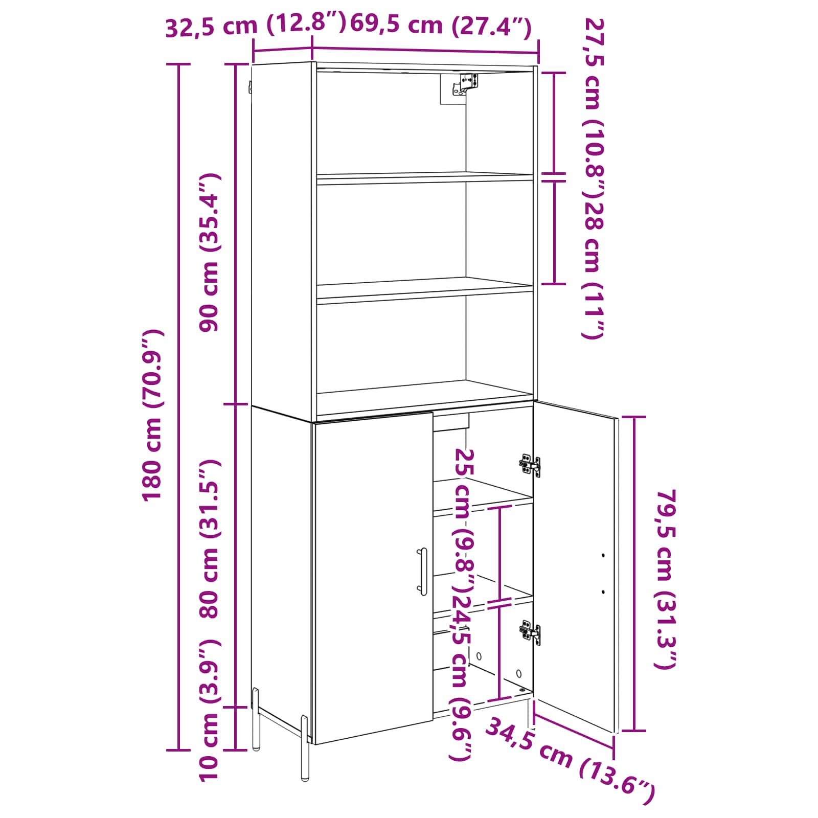 Vysoký bufet Artisanový dub 69,5 x 32,5 x 180 cm