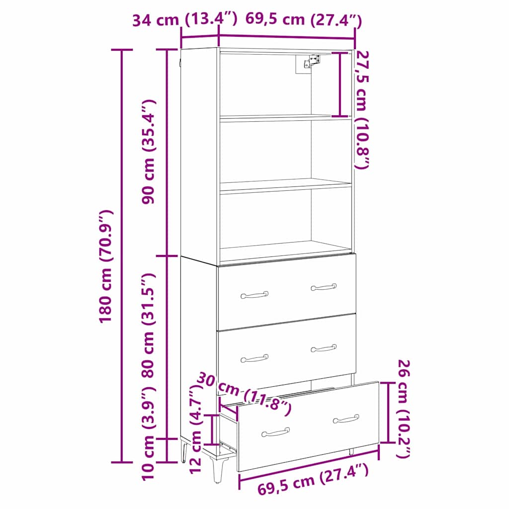 Tento elegantní highboard je skvělým doplňkem do každé jídelny nebo obýváku, přičemž nabízí moderní design, který spojuje jednoduchost a funkčnost. Díky čistým, rovnéhoj tvarům a štíhlému obdélníkovému tvaru ladí s moderními interiéry a nabízí stylové a praktické možnosti úložení.