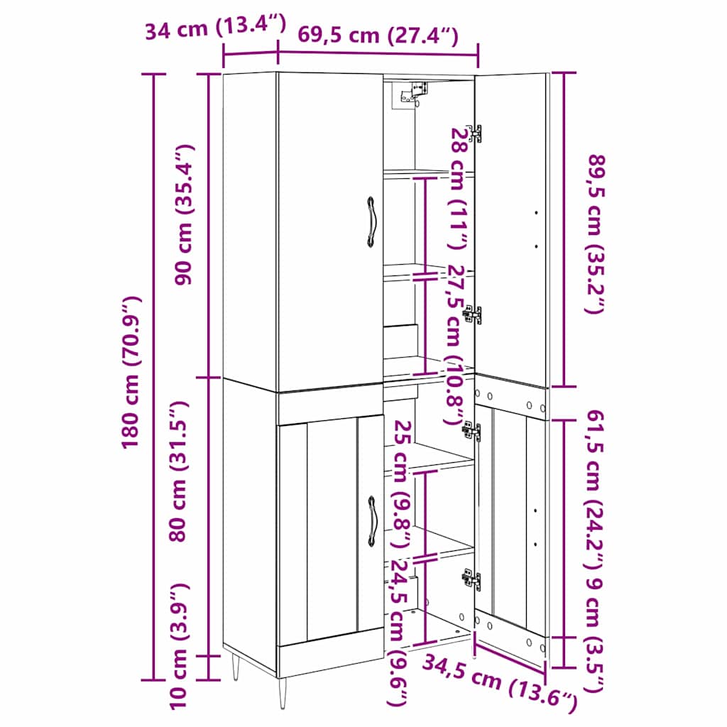 Vysoký bufet Artisanový dub 69,5 x 34 x 180 cm kompozitní dřevo