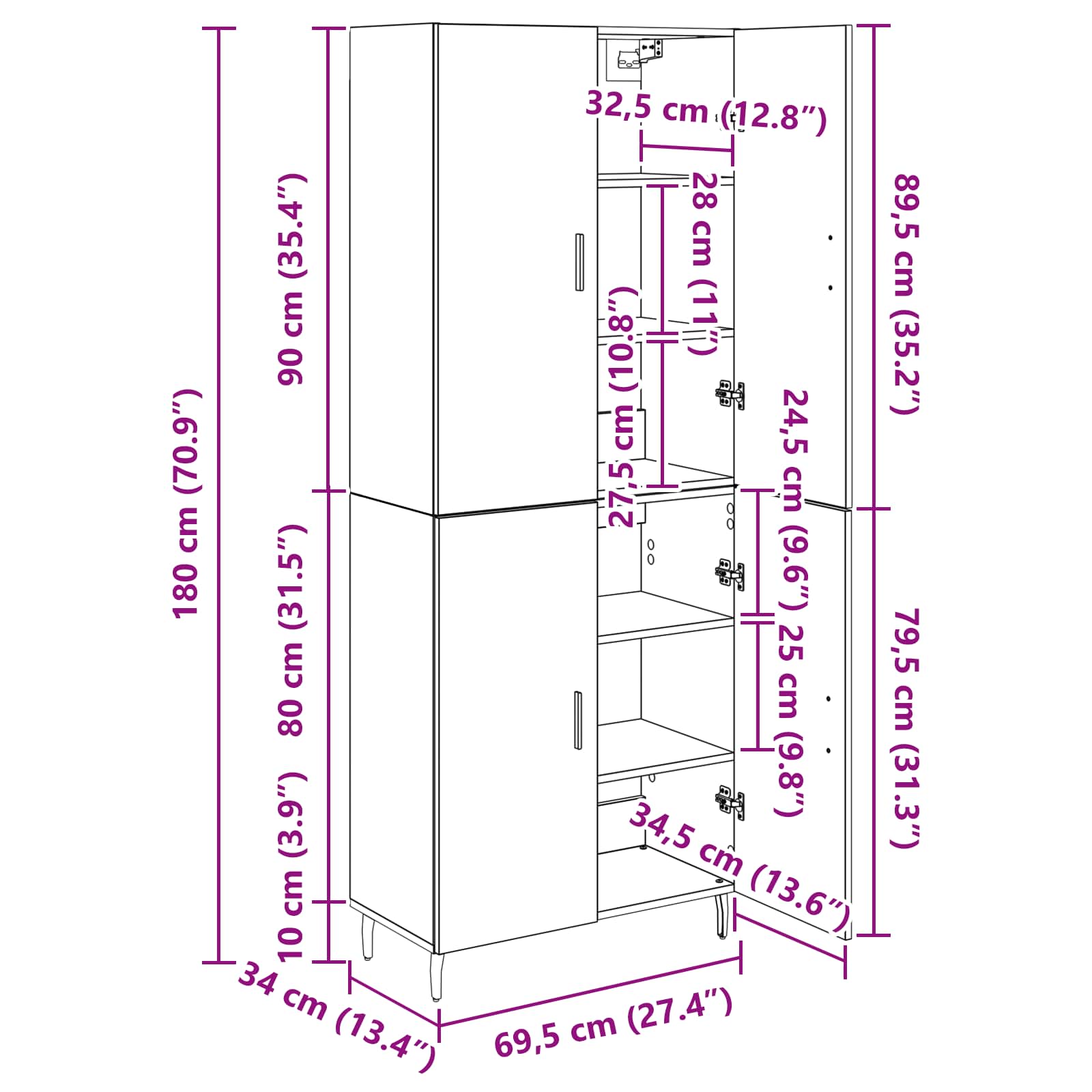 Vysoký bufet Černý dub 69,5 x 34 x 180 cm