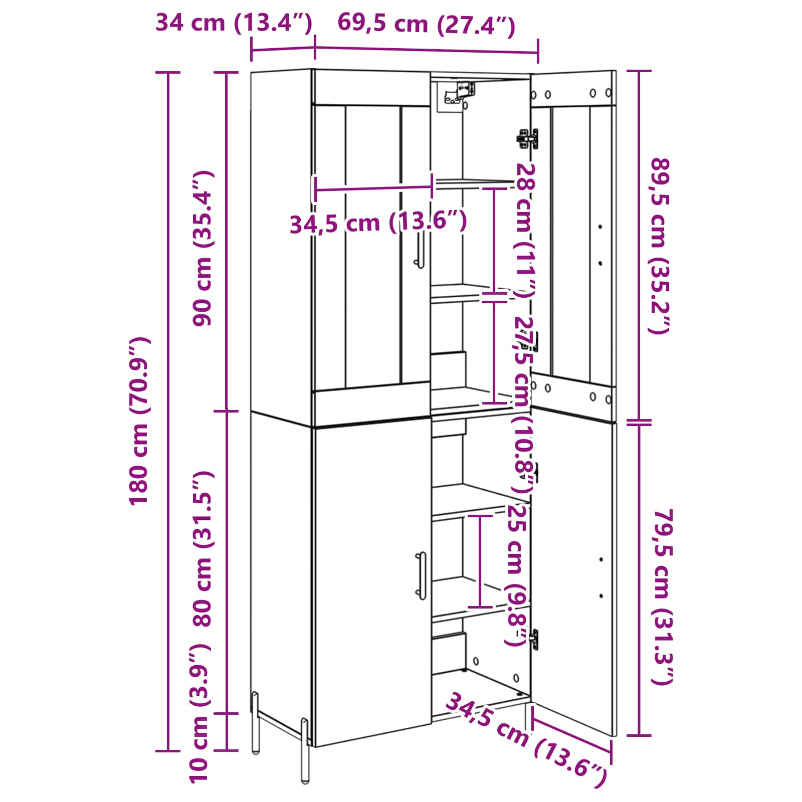 Vysoký bufet Černý dub 69,5 x 34 x 180 cm kompozitní dřevo