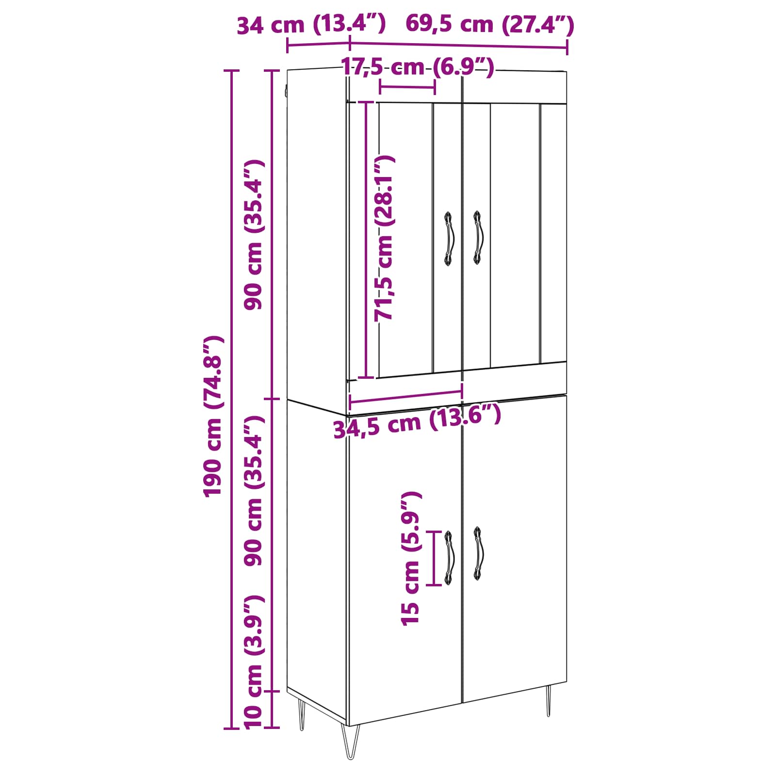 Tato moderní vysoká skříň je úžasná a skvěle doplňuje každou jídelnu. Kombinuje styl a funkci díky svému minimalistickému designu. Stane se středobodem vašeho obývacího prostoru s elegantními liniemi a užitečnou strukturou. Ať už plánujete vystavit skleněné nádobí, uspořádat soupravy na večeře nebo schovat ubrusy, tento servírovací stůl má všechno. Moderní vzhled vysoké skříně se hodí k různým stylům dekorací a dodá vašemu domovu šmrnc a eleganci.