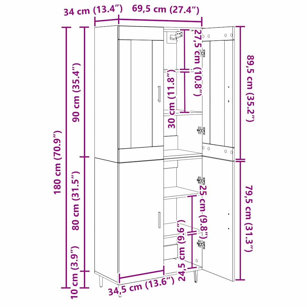 Tato moderní vysoká skříň s dveřmi se bez problémů vejde do jakéhokoliv obývacího nebo jídelního pokoje. Kombinuje styl a funkčnost. Je navržena s elegantním minimalistickým designem, který se hodí ke všem moderním vkusům. Je nejen hezká, ale také praktická, s dostatkem úložného prostoru pro vaše věci.