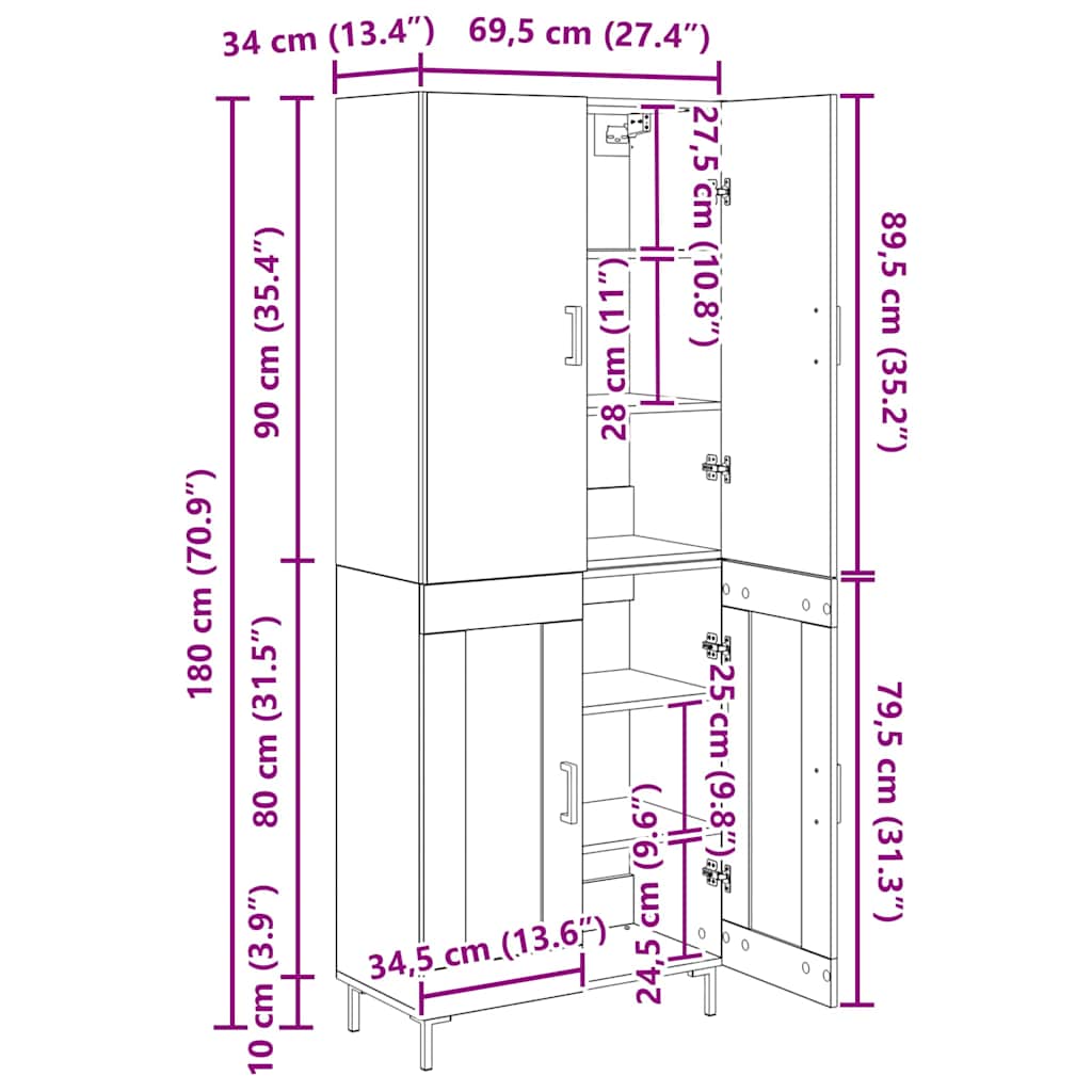 Vysoký bufet Černý dub 69,5 x 34 x 180 cm kompozitní dřevo