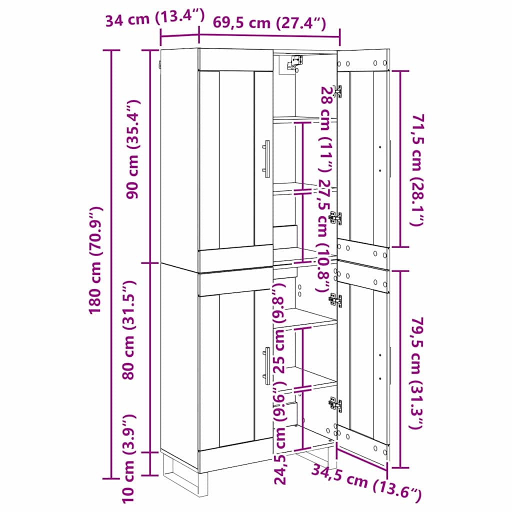• Součásti: S železnými nohami a úchyty dostává moderní průmyslový nádech, který podporuje jeho styl. Dveře s hladce fungujícími panty usnadňují přístup k policím z kvalitního kompozitního dřeva. Tyto prvky zvyšují jak estetiku, tak praktičnost.