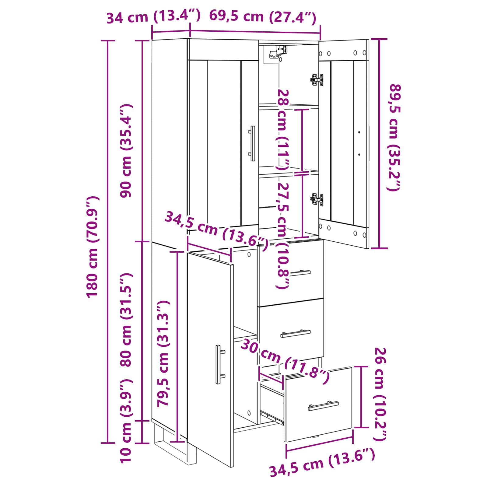 • 1 x Vrchní deska pro vysokou skříň: 69,5 x 34 x 90 cm(DxŠxV)