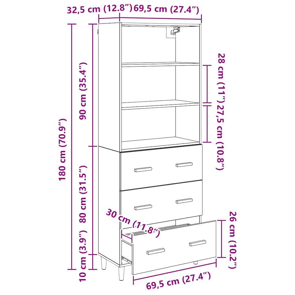 Vysoký bufet Černý dub 69,5 x 34 x 180 cm kompozitní dřevo