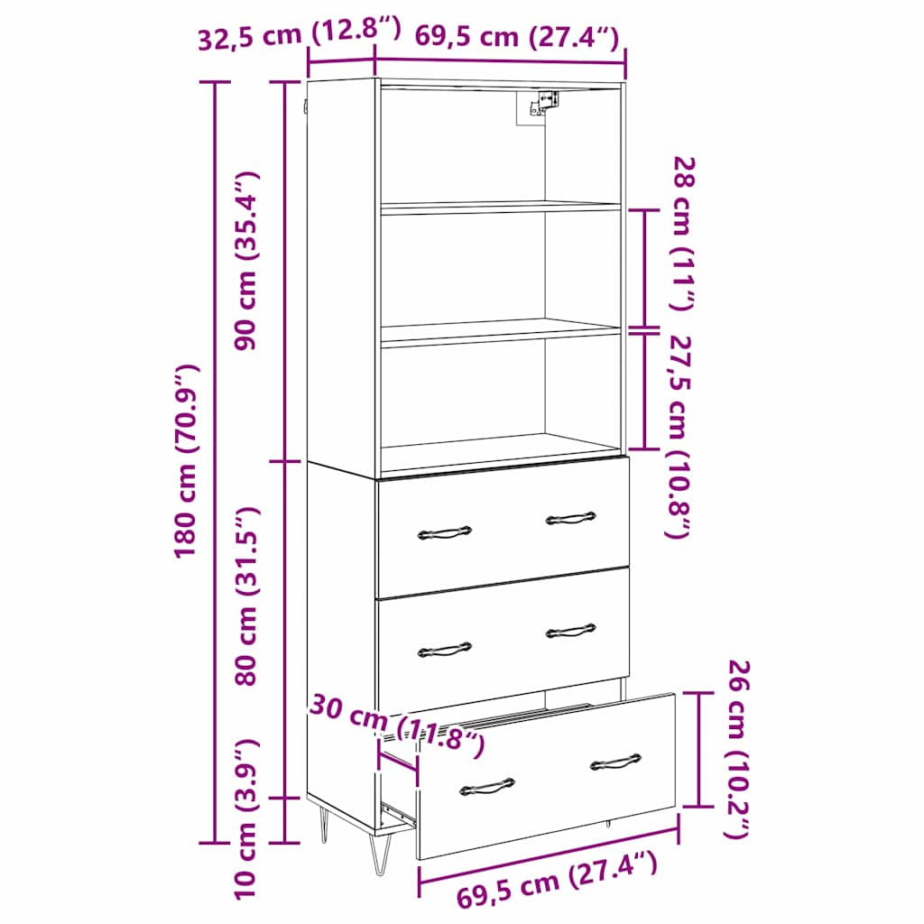 Vysoký bufet se zásuvkou 2 pcs Černý dub kompozitní dřevo