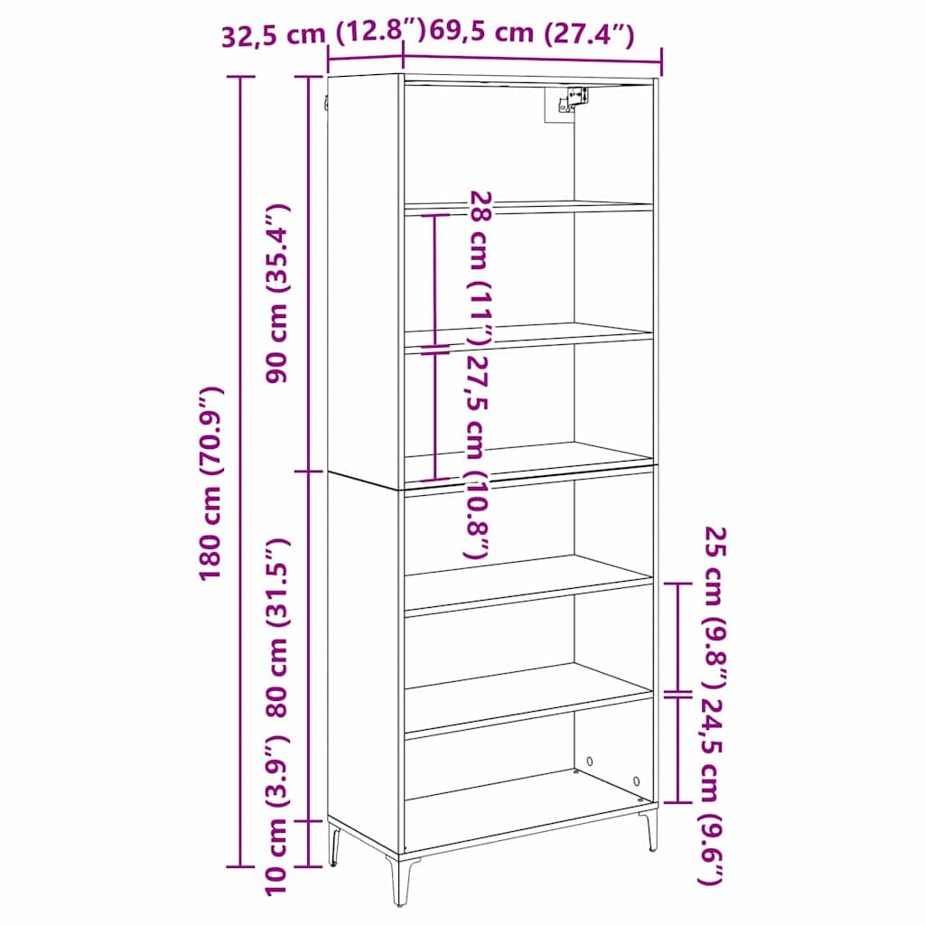 Vysoký bufet Staré dřevo 69,5 x 34 x 180 cm kompozitní dřevo