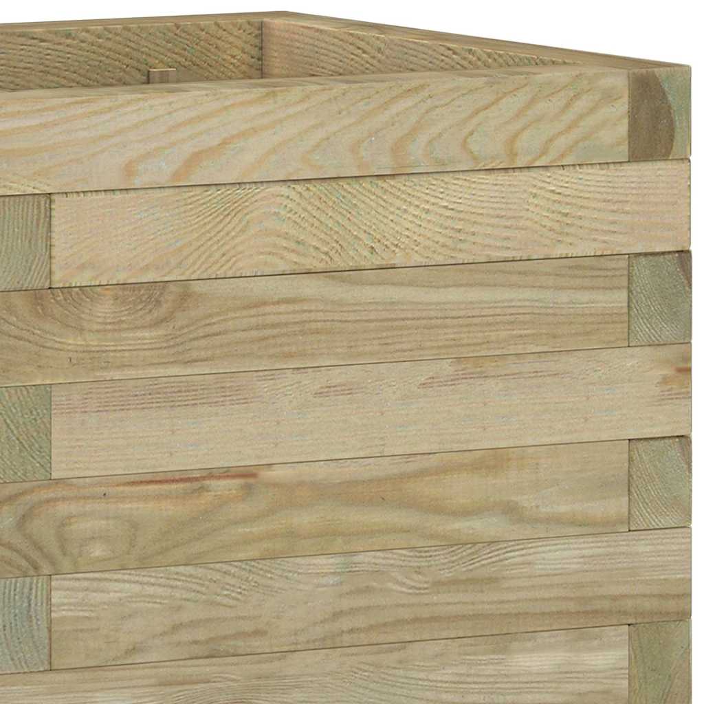 Tento dřevěný truhlík je vyrobený z vysoce kvalitního borového dřeva se zelenou impregnací. Je velmi robustní, odolný vůči hnilobě a má dlouhou životnost. Dvě dřevěné nohy na spodní straně zlepšují stabilitu truhlíku. Montáž je opravdu snadná.
